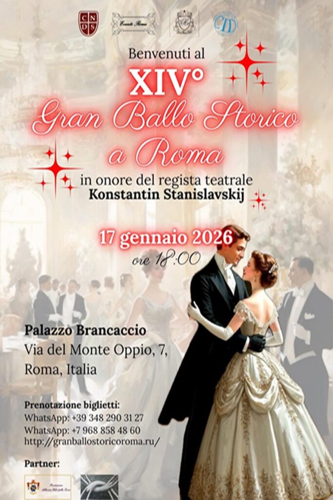 Si terrà il 17 gennaio 2026 l’ormai annuale Gran Ballo Storico a Roma, già alla sua XIV° edizione, dedicato al regista teatrale Konstantin Stanislavskij.